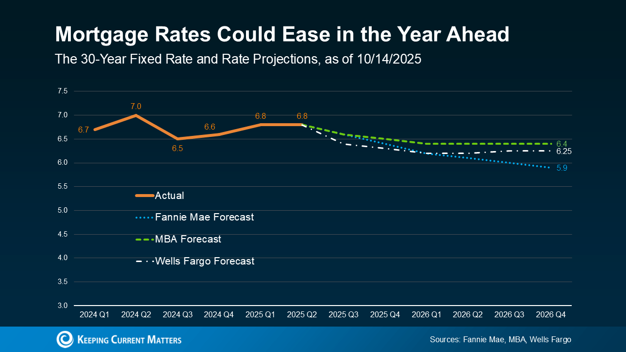 The #1 thing just about every buyer has been looking for is lower mortgage rates. And after peaking near 7% earlier this year, rates have started to ease. The latest forecasts show that could continue throughout 2026, but it won’t be a straight line down (see graph below):